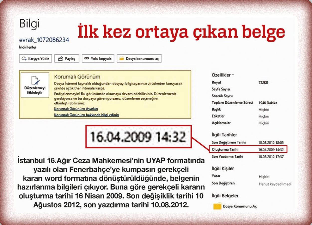 Unutmayın! Yukarıda okuduğunuz belgenin tarihi 16 Nisan 2009. Taraf ise 18 gün önce yani 29 Mart 2009'da, “Fenerbahçe'yi Ergenekon'a bağlamak için” manşet atıyor.