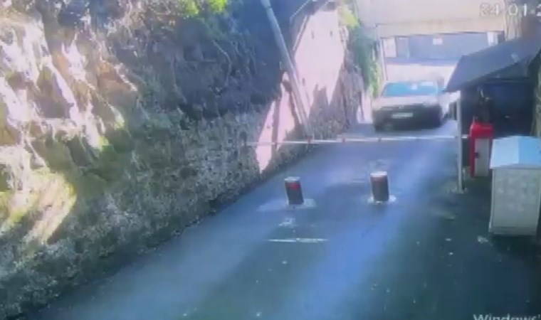 Görüntülerde Ahmet Furkan B.'nin hafif ticari aracıyla bariyerlerle kapalı holding girişine geldiği ve hız kesmeden girmeye çalıştığı görülüyor.