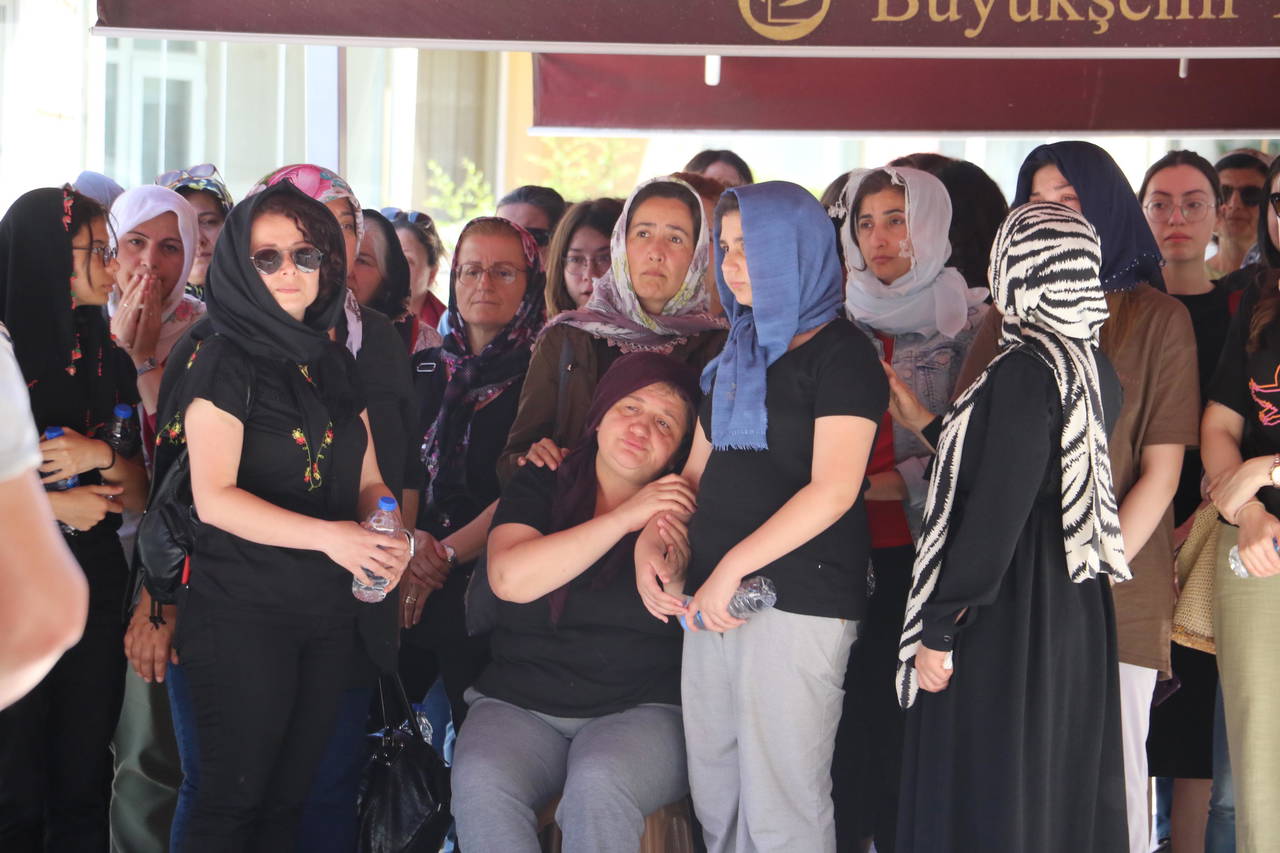 Ezgi'nin arkadaşları tabuta çiçek bırakırken, anne Sağlam diğer kızı Deniz'e sarılıp, gözyaşı döktü.