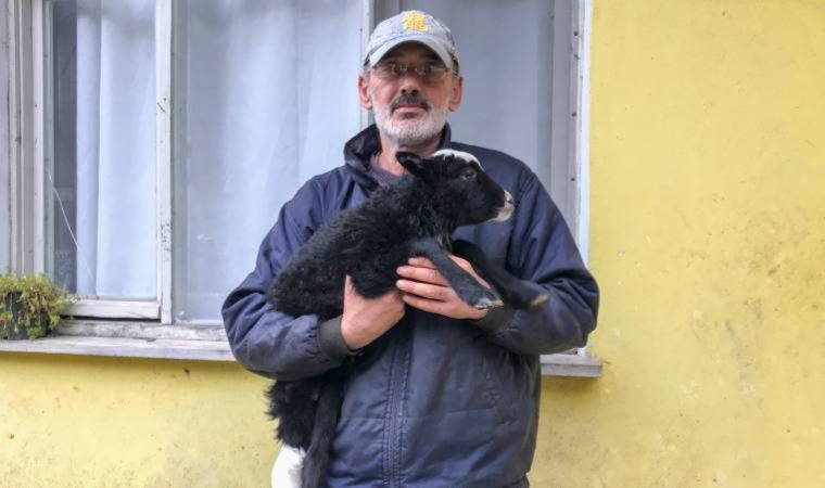 - Bu sabah indik ahıra, baktım ki bu yatıyor, kalkamıyor. Kalktıysa topallıyor. Fark ettim ki ayağı kırık. Hemen aldık Çayeli Devlet Hastanesi’ne götürdük. Sağ olsunlar, röntgenini çektiler, bandajını, alçısını yaptılar. Kuzumuzu aldık geldik. Kuzuyla bizi hastanede görünce şaşırdılar, ama yapacak bir şey yok. Burası hastane neyin geleceği belli olmaz. 10-15 gün sonra kalkacak yürüyecek.