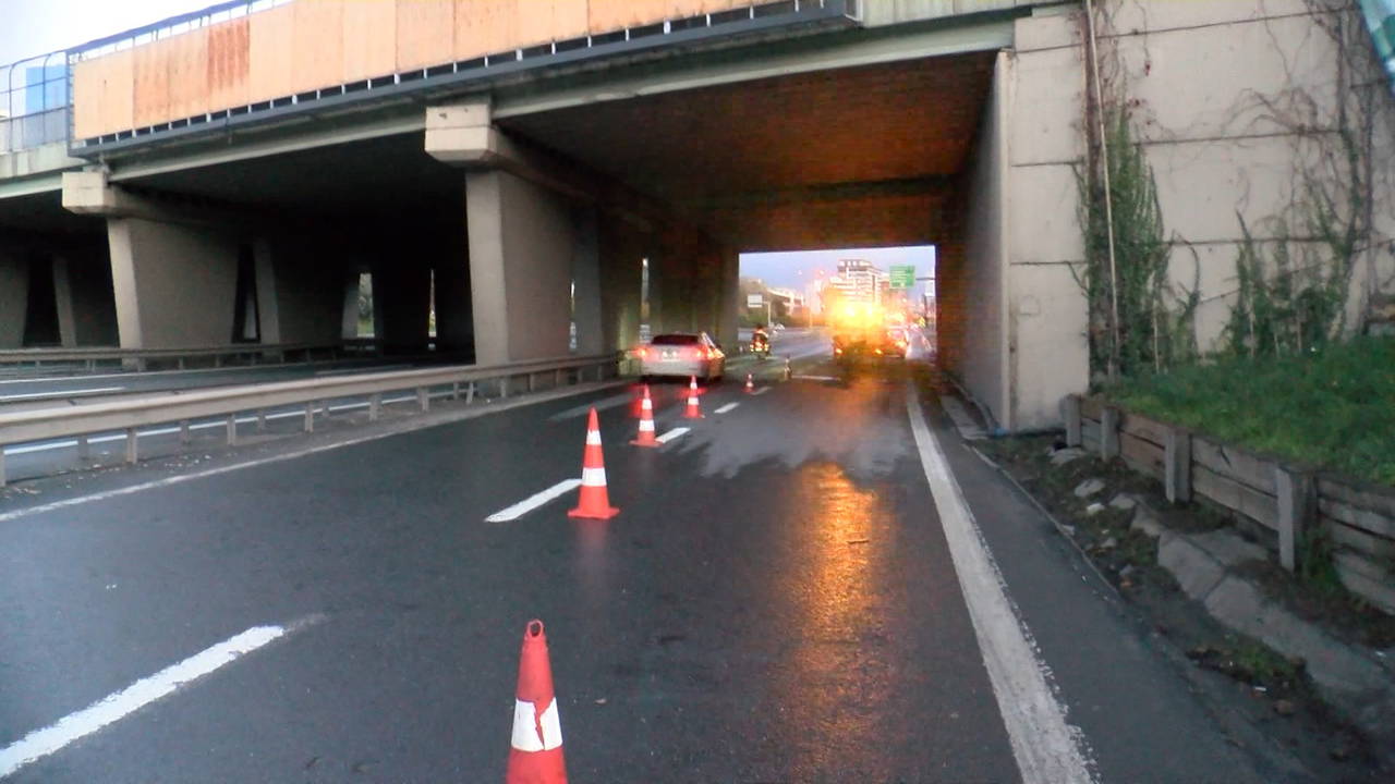 Basın Ekspres Yolu'nun Başakşehir istikametinde Güneşli yol ayrımındaki altgeçitte, duvardaki beton kaplama parçası henüz bilinmeyen nedenle yola devrildi.