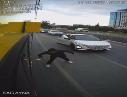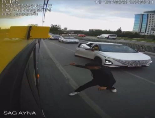 O-3 Avrupa Otoyolu Bahçeşehir yönünde, dün saat 18.00 sıralarında seyir halindeki E-59 numaralı İETT otobüsünün şoförü ile 34 HDS 055 plakalı otomobilin içerisinde bulunanlar arasında yol verme nedeniyle tartışma çıktı.