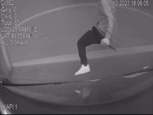 Daha sonra otobüsün ön tarafına doğru gelerek şoförün hizasındaki cama bıçakla vurmaya başladı, bir yandan da İETT şoförüne eliyle işaret ederek dışarı çıkmasını söyledi.