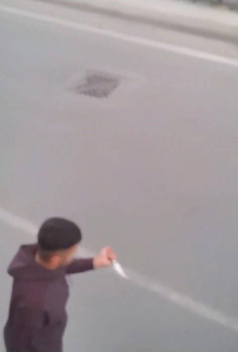Kısa süre sonra otomobilden inen bir kişi, otobüsün camlarına vurarak tekme atmaya başladı. Trafik yoğunluğundan dolayı otobüsün ilerleyememesini fırsat bilen saldırgan, otomobilden aldığı bıçakla koşarak gelip, otobüsün lastiklerini patlatmaya çalıştı.