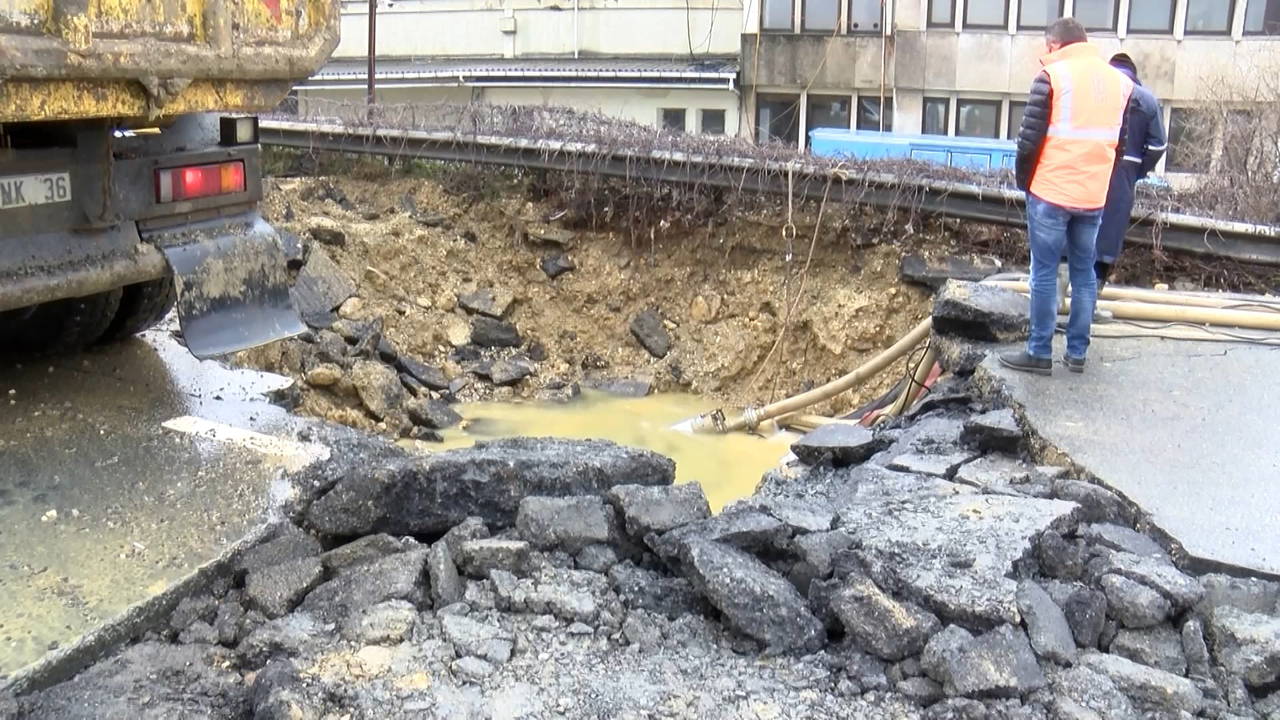Polis ekipleri çevrede güvenlik önlemi alarak yolu trafiğe kapatırken, yolda biriken su tahliye edilmeye başlandı. Cadde trafiğe kapandı, ekipler çalışmalara başladı.