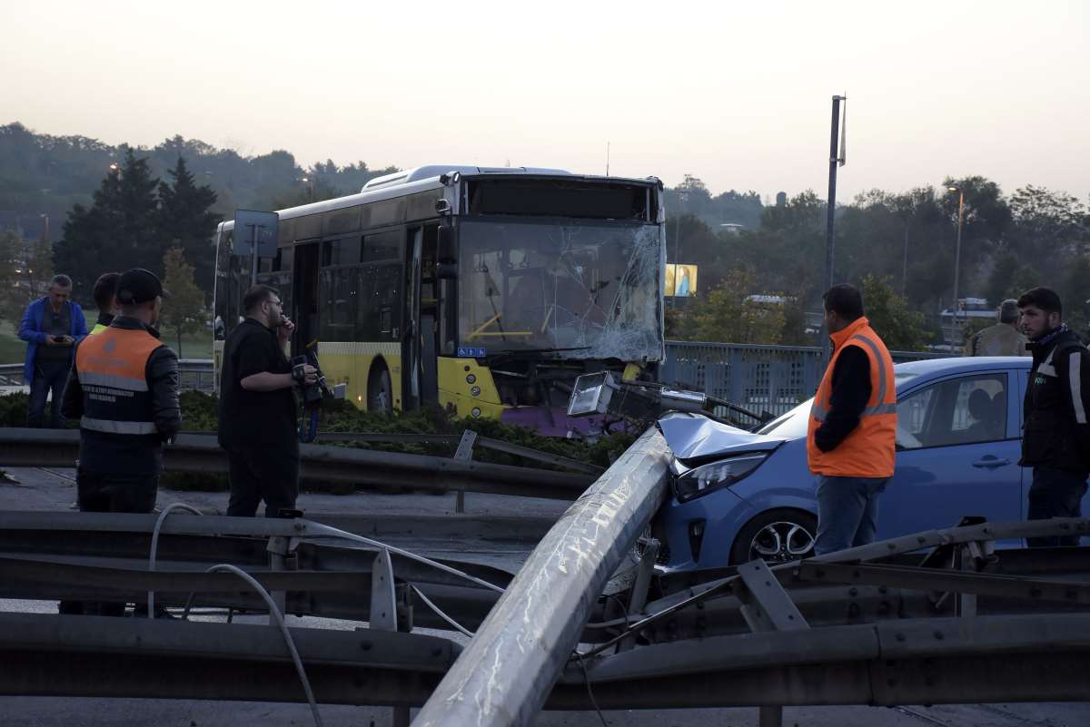 Edinilen bilgiye göre; şoförünün direksiyon hakimiyetini kaybetmesiyle yoldan çıkan İETT otobüsü, demir bariyerlere ve aydınlatma direğine çarptı.