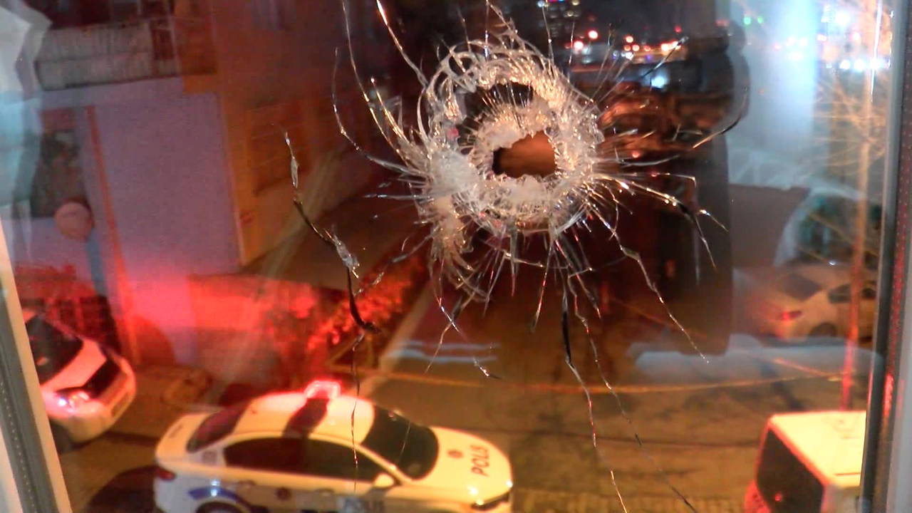 Taraflar arasındaki silahlı çatışmada, park halindeki 2 araca ve binanın birinci katındaki daireye çok sayıda kurşun isabet etti. Daireye isabet eden kurşun, camdan girerek televizyona rast geldi. Koltukta oturan kadın ölümden döndü.