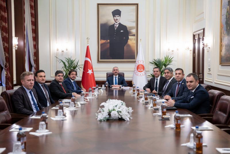 Adalet Bakanı Abdulhamit Gül, Türkiye Barolar Birliği Başkanlığına seçilen Erinç Sağkan ile birlikte TBB Genel Sekreteri Veli Küçük, TBB Yönetim Kurulu Üyeleri Ramazan Erhan Toprak ve Ali Bayram'ı kabul etti.