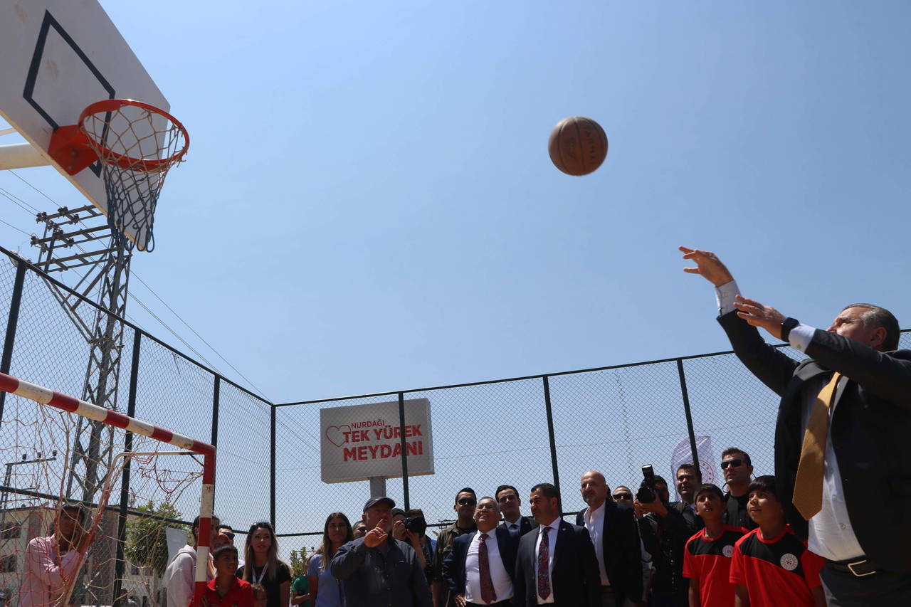Nurdağı'ndaki AFAD Koordinasyon Merkezi'ni ziyaret eden Bakan Bak, yürütülen çalışmalara ilişkin bilgiler aldıktan sonra bölgede yapılan gençlik merkezleri ve spor salonlarını gezdi. Çocuklarla basketbol oynayan Bakan Bak, yüzme kursu ve bilim merkezini de gezdi. Bak, çocuklar için düzenlenen bisiklet yarışını da başlattı.