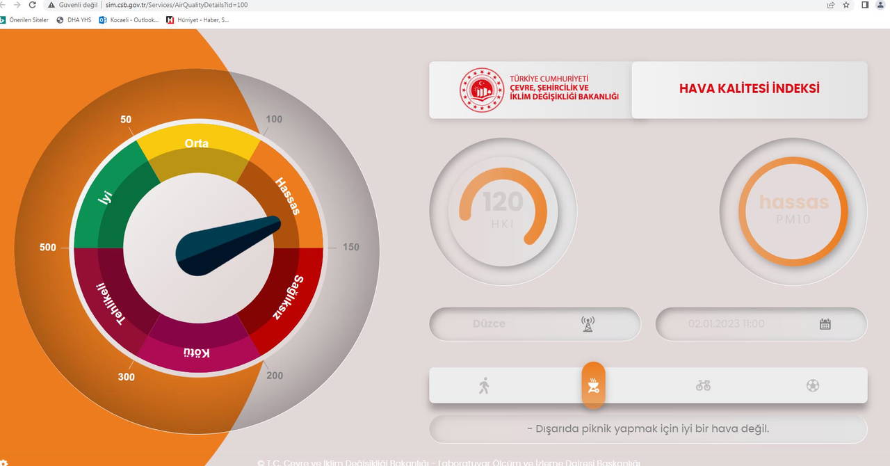 Temiz hava için 0 ile 50 arasında olması gereken PM10 endeksi 120 seviyelerine yükseldi.