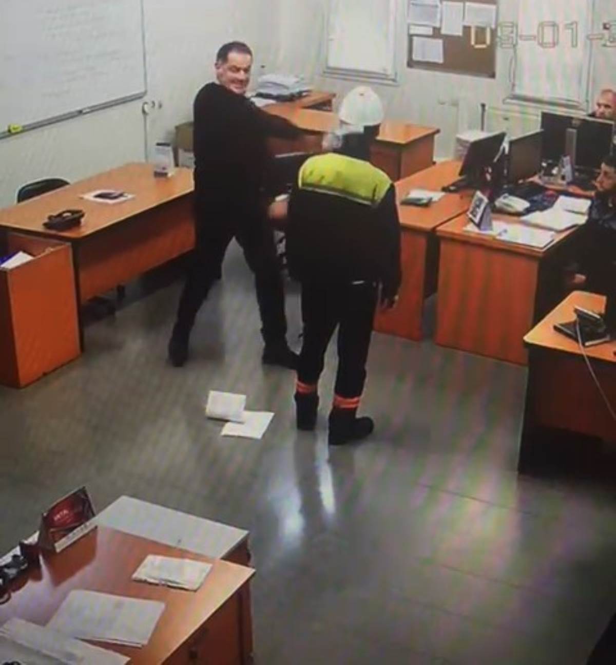 İddiaya göre fabrikanın patronu Sadettin Tezcan, işle ilgili bir konu nedeniyle çağırdığı bir işçisine hakaretler savurdu. İşçinin eline vuran Tezcan, kağıtları önce yere ardından işçinin suratına attı. O anlar saniye saniye güvenlik kamerası tarafından kaydedildi.