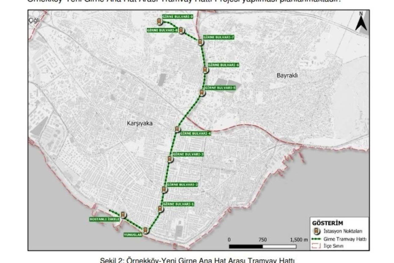 İzmir Büyükşehir Belediyesi’nin Karşıyaka’da Örnekköy - Yeni Girne arasında hizmet verecek olan 5.15 kilometrelik yeni tramvay hattına Çevre, Şehircilik ve İklim Değişikliği Bakanlığı, ÇED gerekli değildir kararı verdi.
