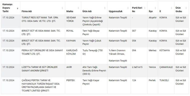 Başlangıçta 600'ün üzerinde gıdanın yer aldığı listede çok sayıda et, peynir, zeytinyağı gibi ürün yer alırken, bugün yapılan eklemede listeye yeni peynir ve tereyağı üreticileri eklendi.