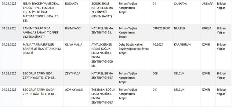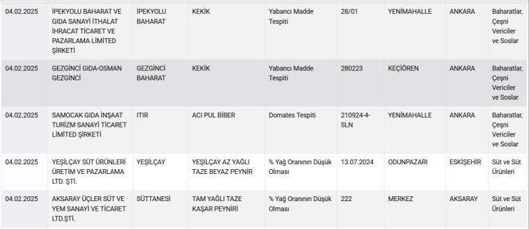 "guvenilirgida.tarimorman.gov.tr" adresinden paylaşılan listede gıdada hile yapan firmalar ve ürünleri tek tek açıklanıyor.