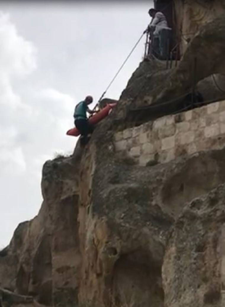 Bölgeye sevk edilen UMKE ekipleri, ip sistemi kurarak Atay'ı kurtarma sedyesi ile bulunduğu yerden 30 metre aşağı indirdi. Atay, sağlık ekiplerinin ilk müdahalesinin ardından Nevşehir Devlet Hastanesi'ne kaldırıldı.