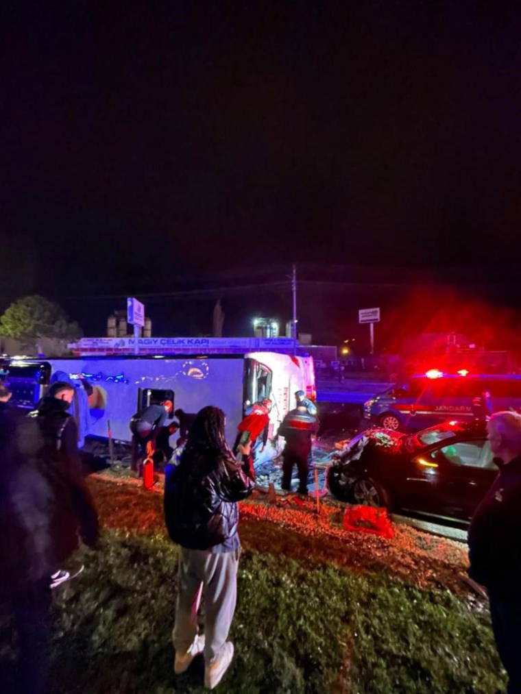Çarpışmanın etkisiyle otobüs devrildi. Devrilen otobüse ise bir başka otomobil çarptı. Kazanın ihbar edilmesinin ardından bölgeye çok sayıda ambulans, polis, itfaiye ve jandarma ekibi sevk edildi.