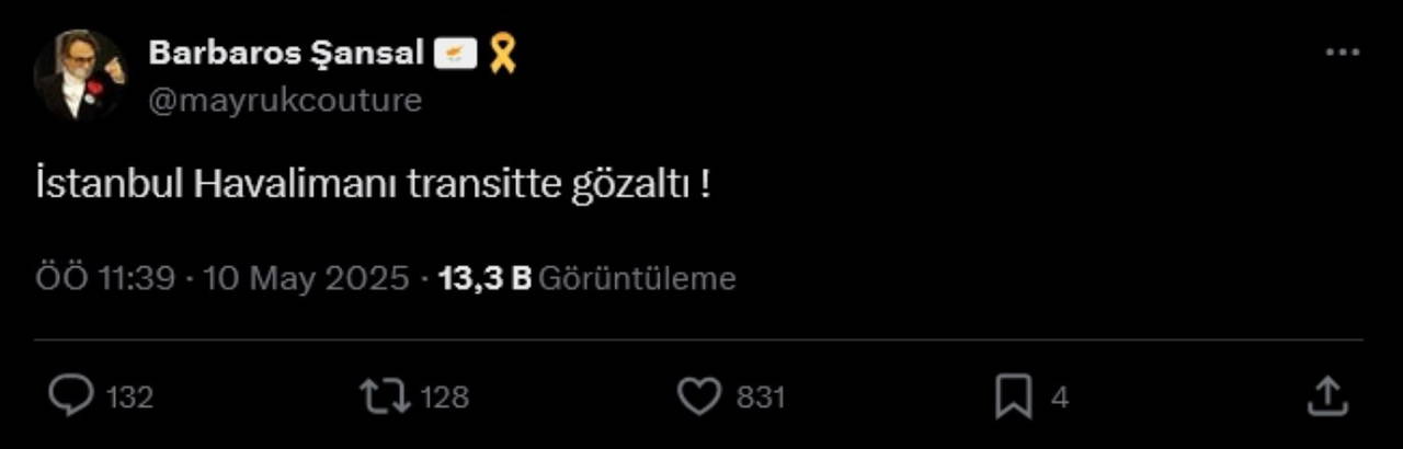 Şansal, "İstanbul Havalimanı transitte gözaltı!" paylaşımını yaptı.