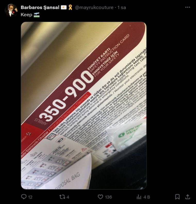 Şansal, gözaltına alınmadan bir saat önce THY'nin uçağını içinden fotoğraf paylaşmıştı.