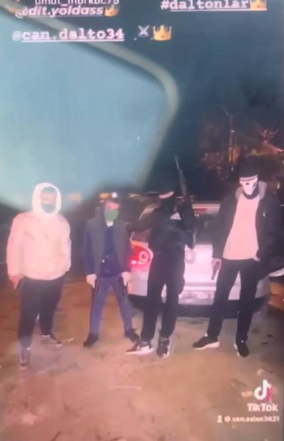 Görüntülerde akşam saatlerinde lüks araçlarla İstanbul sokaklarında konvoy halinde gezen şüphelilerin ellerindeki uzun namlulu silahlarla, açılır tavandan çıkarak poz verdikleri görülüyor.