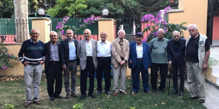Barış Derneği davasından yargılanan 9 aydın 2021 yılında Büyükada’da buluşmuştu. Fotoğrafta soldan sağa doğru; şair Ataol Behramoğlu, Mustafa Gazalcı, Adalar Belediye Başkanı Erdem Gül, Enis Coşkun, avukat Turgut Kazan, Ergun Elgin, eski CHP milletvekili Kemal Anadol, Gencay Şaylan, gazeteci Ali Sirmen, Niyazi Dalyancı.