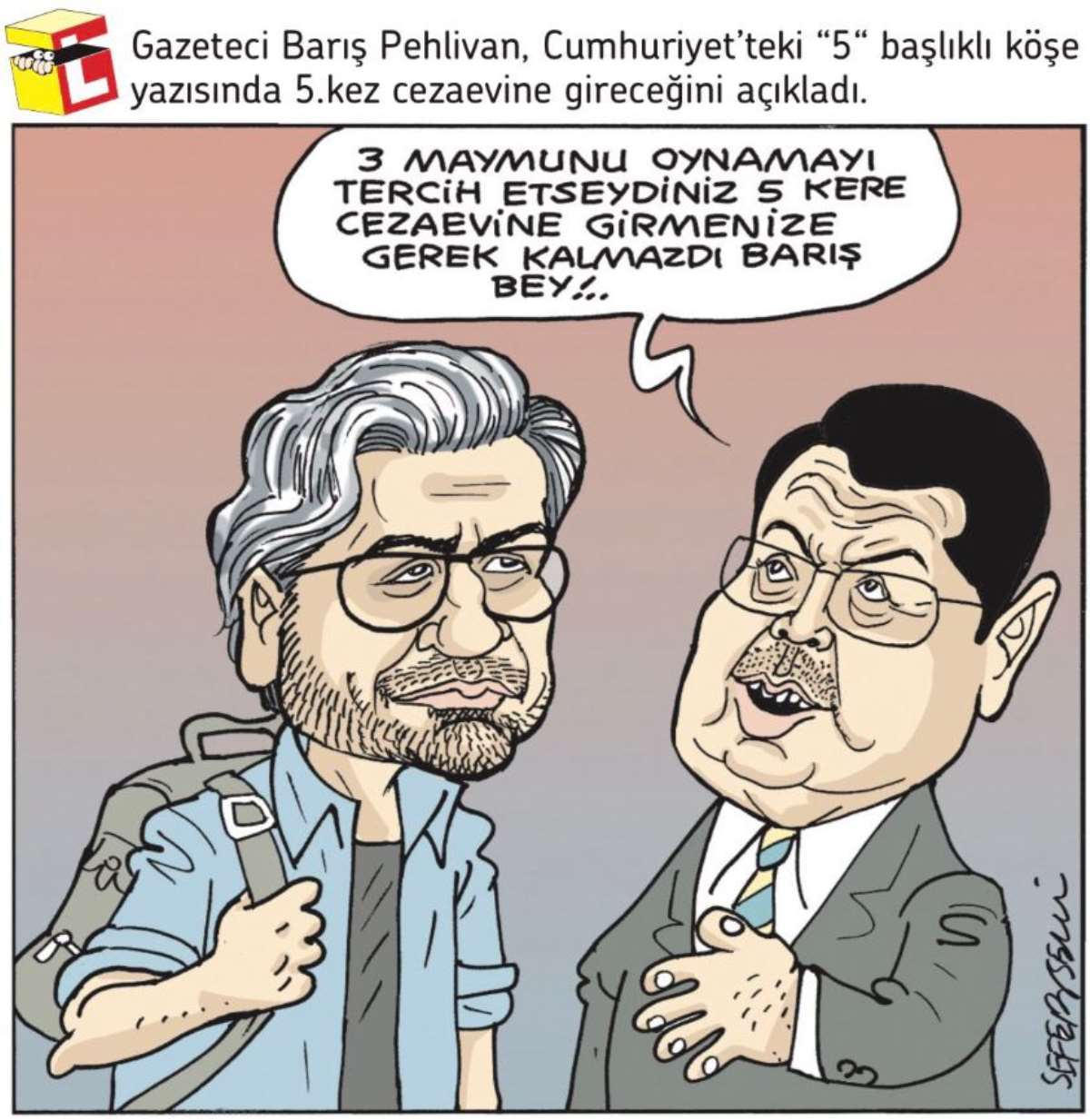 LeMan Dergisi ise resmi sosyal medya hesabından, Barış Pehlivan ile Adalet Bakanı Yılmaz Tunç'un bulunduğu bir karikatür paylaşarak şu notu düştü: