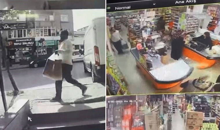 Görüntülerde, markete giren şahsın kahve kolilerini poşete koyduktan sonra hızla marketten çıkarak uzaklaştığı görüldü.