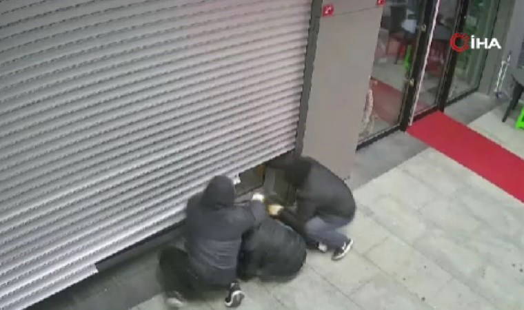 Polis ekipleri kaçan şüphelileri yakalamak için çalışmalara devam ederken hırsızlık anı güvenlik kamerası tarafından saniye saniye kaydedildi.