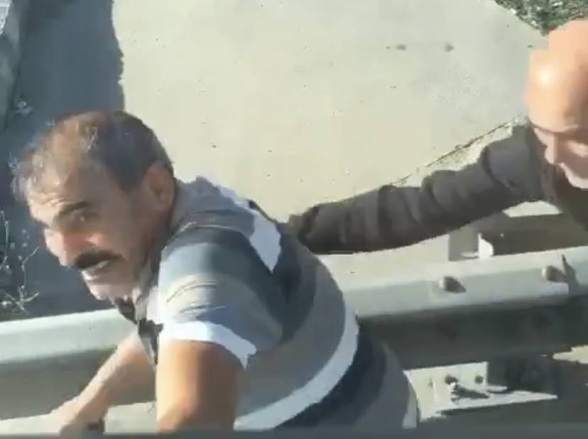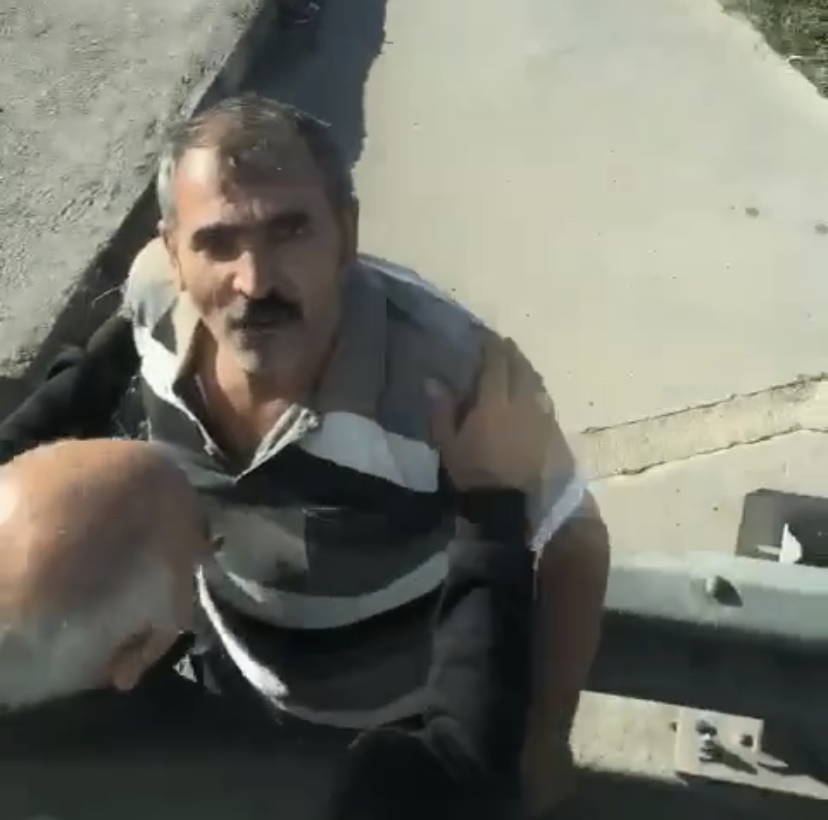 Kamyoncu, aracıyla ilerlediği sırada da hakaretler savurdu. O anlar saldırıya uğrayan TIR şoförünün cep telefonu kamerasına saniye saniye yansıdı.