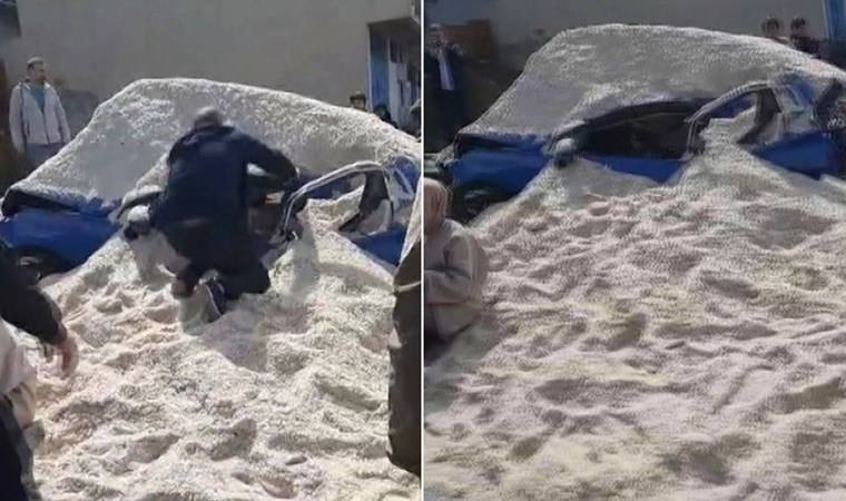 Bu sırada kamyon, arkasında seyir halinde olan sürücü kursuna ait otomobile çarptı. Kamyonda yüklü olan tuzlar otomobilin üzerine döküldü. Araç kullanılamaz hale gelirken, otomobil sürücüsü ve arka koltukta oturan kadın araç içerisinde mahsur kaldı.