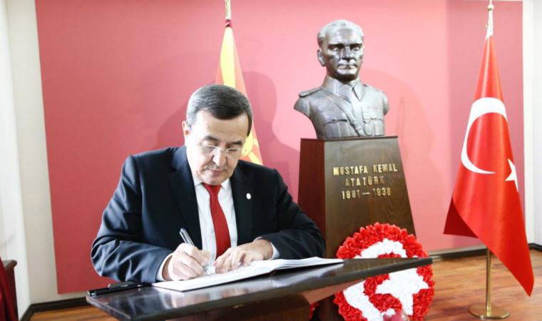 Kardeş şehir Manastır (Bitola) ile ilişkileri geliştirmek; belediye başkanları, siyasi partilerin liderleri, sivil toplum temsilcileri ve soydaşlarla görüşmeler yapmak için Makedonya’da bulunan Başkan Batur, 10 Kasım’da Mustafa Kemal Atatürk’ün eğitim gördüğü Manastır Askeri İdadisi’ndeydi.