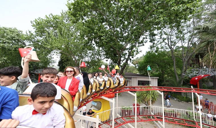 Çocuklarla birlikte Kültürpark’ı turlayan Başkan Mutlu, 23 Nisan hediyesi olarak onları lunaparka götürdü. Lunaparkta gönüllerince eğlenen çocuklara eşlik eden Başkan Mutlu, miniklerin isteğini kırmayarak onlarla birlikte elma kurdu oyuncağına bindi. Çoğunluğu lunaparka ilk kez gelen çocuklar unutulmaz bir 23 Nisan yaşadı.