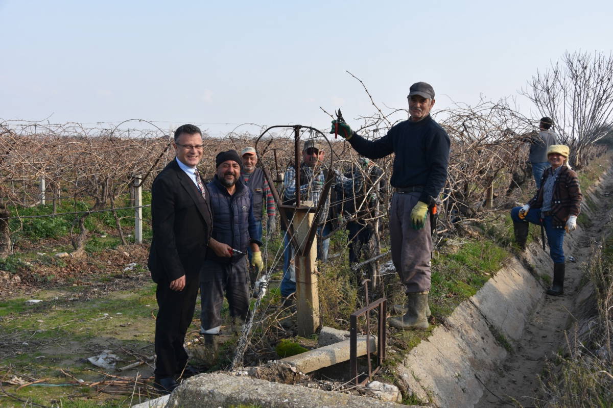 Alaşehir Belediye Başkanı Ahmet Öküzcüoğlu, dünyaca ünlü Sultaniye üzümü bağlarında çalışan işçilerini ziyaret etti. Budama ve ip bağlama gibi çalışmaların yapıldığı üzüm bağında işçilerle sohbet eden başkan Öküzcüoğlu, birer de bere hediye etti.