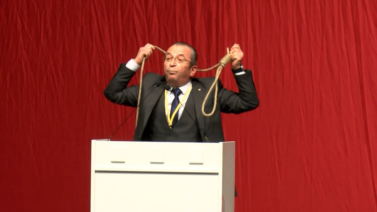 Öztürk'ün bu eyleminden sonra salonda sözlü tartışmalar yükselirken Eyüp Aksu'nun idam ipini yerden aldığı ve kürsüye çıkarken hiçbir şey demeden yere bıraktığı görüldü.