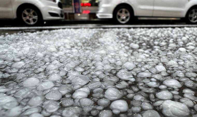 Dolu yağışıyla bazı alanlar beyaza büründü.