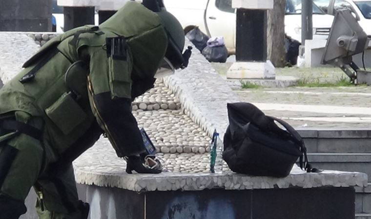 Çevre güvenliği alınarak bomba imha uzmanı tarafından şüpheli paket fünye ile patlatıldı.