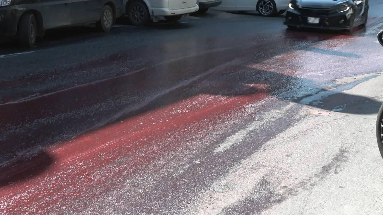 Bayrampaşa 29 Ekim Caddesi'ni kırmızı renkli bir sıvı kapladı. Kısa sürede caddenin büyük bölümü kırmızıya boyandı. Çevredekiler durumu belediye ekiplerine bildirdi. Ekipler sıvının geliş yönünü takip ederek kaynağının tekstil atölyelerinin bulunduğu bir sokak olduğunu belirledi.