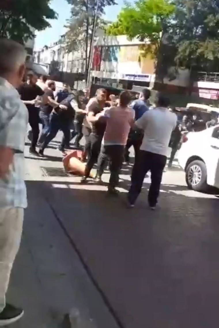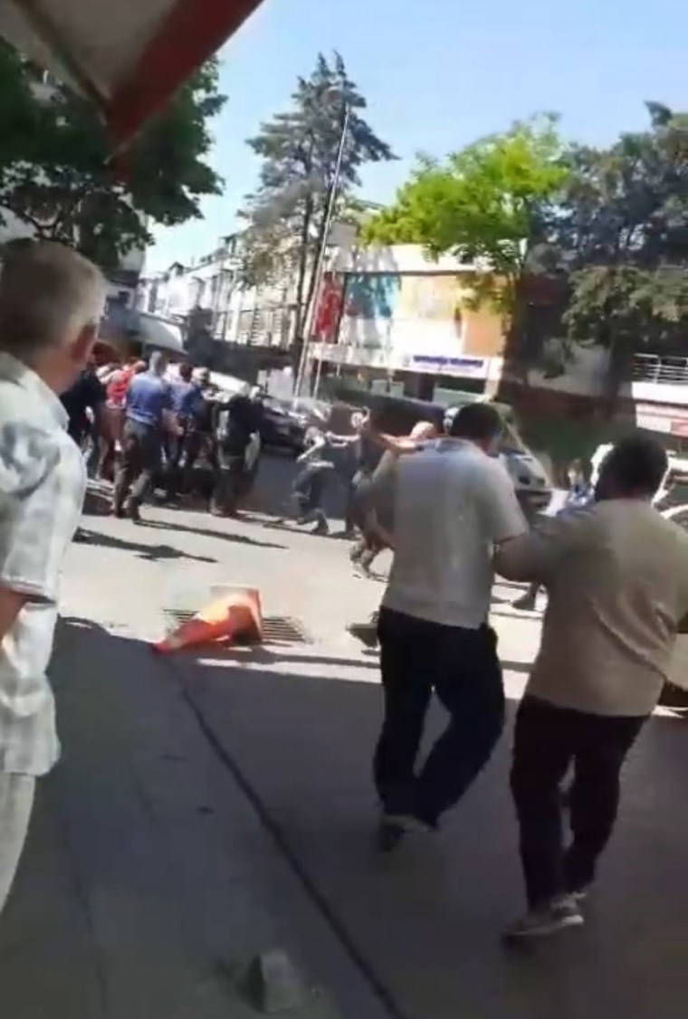 Tarafların yakınlarının da dahil olduğu kavgada yumruklar havada uçuştu. Cep telefonu kamerasına yansıyan görüntülerde tarafların sokak ortasında bir birine yumruklarla saldırdığı görüldü.