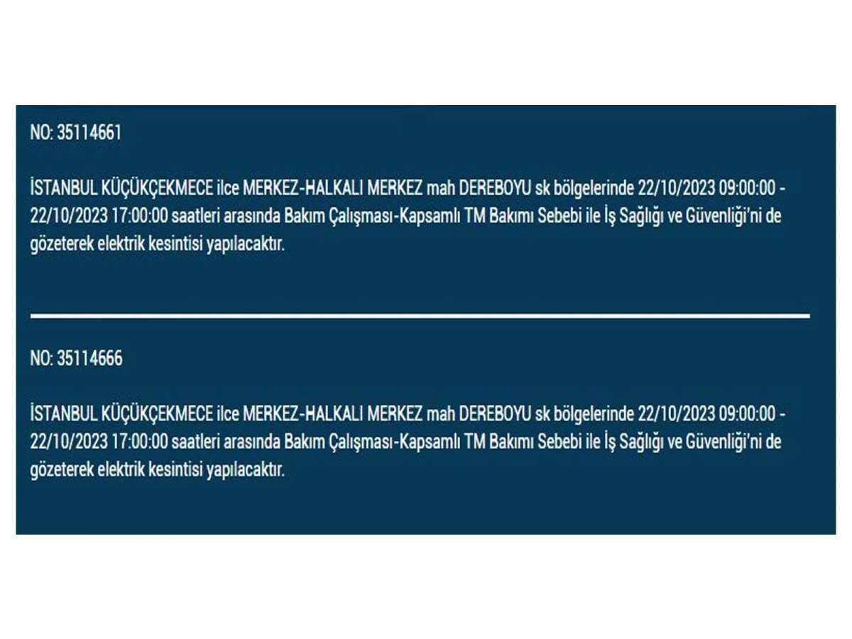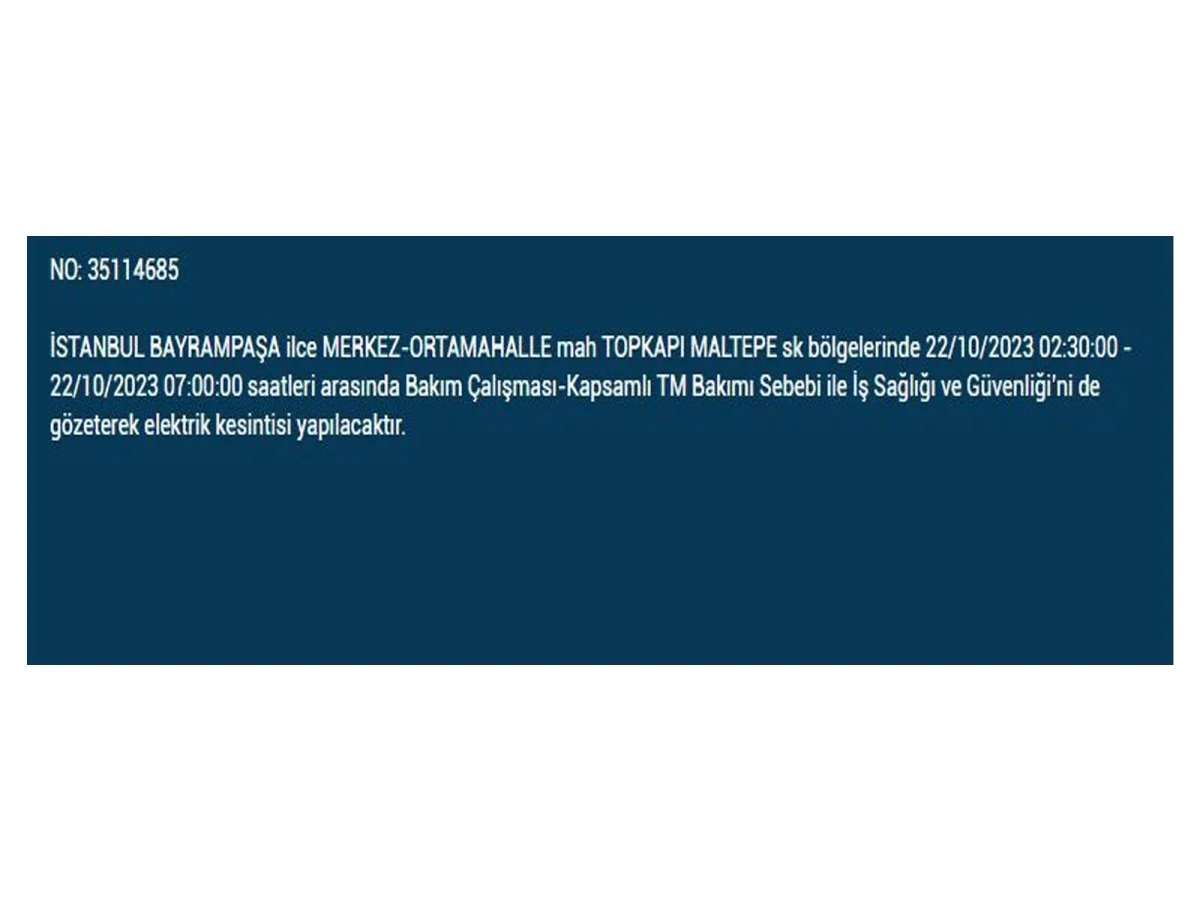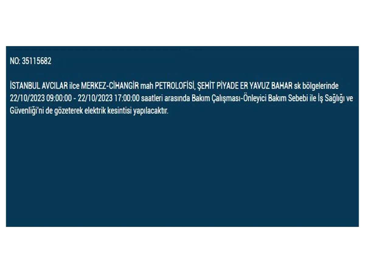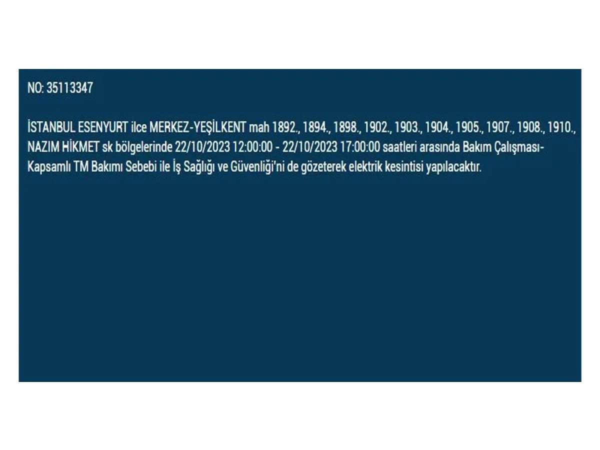 Ekim Pazar günü elektrik kesintilerinin yapılacağı ilçe ve mahalleleri internet