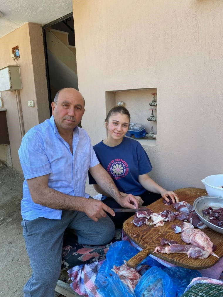 Sarıgöl Belediye Başkanı Tahsin Akdeniz Kurban Bayramı dolayısıyla kurbanlık koçunu evinin bahçesinde kendisi kesti.