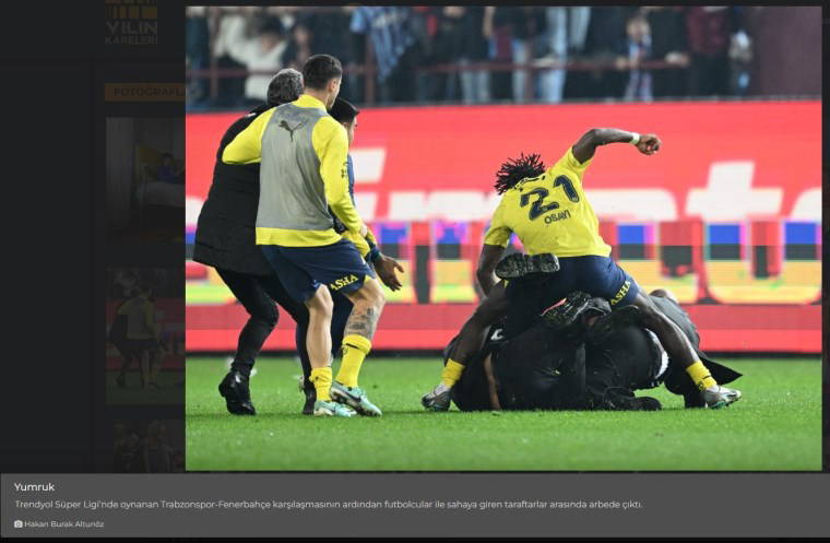“Anadolu Ajansı’nın resmi sitesinde ‘2024 yılına damga vuran fotoğraflar’ arasına konulan bu fotoğrafta, Fenerbahçeli futbolcu, yerde derdest edilmiş bir halde yatan Trabzonspor taraftarına saldırmakta, şiddet uygulamakta ve açıkça suç işlemektedir. Söz konusu fotoğraf, üstelik “Yumruk” başlığıyla ve “Trendyol Süper Ligi’nde oynanan Trabzonspor-Fenerbahçe karşılaşmasının ardından futbolcular ile sahaya giren taraftarlar arasında arbede çıktı” şeklindeki bir açıklamayla servis edilmiş! Futbol sahalarında eşine rastlanmadık bu vahim olayın, devletin resmi haber ajansı olan Anadolu Ajansı gibi bir kurumun yarışmasında yer almasını şiddetle kınıyorum!” açıklamasında bulundu.