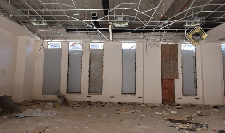 12 bin 500 metrekare kapalı alana sahip, bodrum, zemin dahil 5 kattan oluşan ve kaba inşaatının yüzde 70’i tamamlanan yapı, hırsızlar tarafından adeta talan edildi. Binanın girişindeki çerçeveler sökülerek, klimalar çalındı, camları kırıldı.
