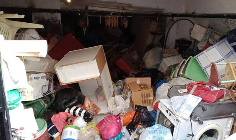 Polis nezaretinde açılan evde belediye ekipleri tarafından 24,8 ton metal hurda, kâğıt ve diğer atıklardan oluşan çöpler toplandı.