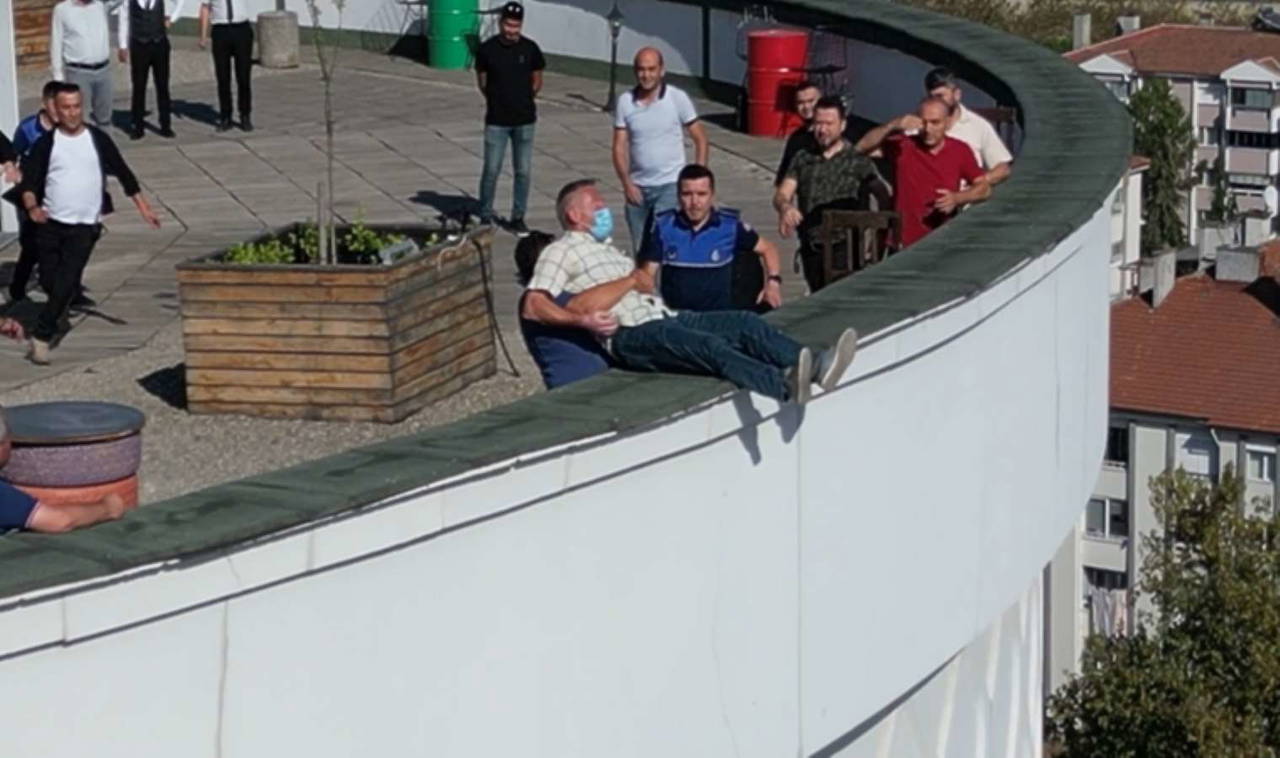Çaycuma Belediye Kompleksi'nde kafeteryanın yer aldığı 8'inci kata müşteri gibi çıkan Erdoğan D. isimli yurttaş, çay içtikten sonra beton korkulukların üzerine çıkarak intihar etmek istedi.