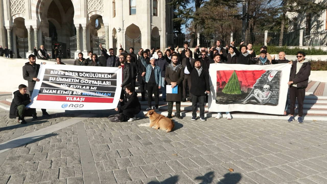 Beyazıt'ta toplanan Anadolu Gençlik Derneği üyeleri yılbaşı kutlamalarını protesto etti.
