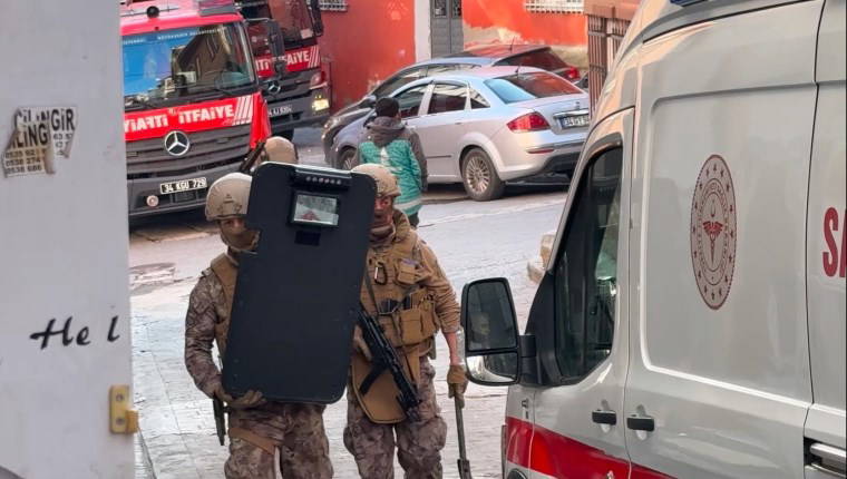 Uzun süre boğazına dayadığı bıçakla camdan bağıran Şahan B.’yi gören çevre sakinleri, polis ekiplerine ihbarda bulundu. İhbar üzerine çok sayıda polis, itfaiye ve sağlık ekibi olay yerine sevk edildi.