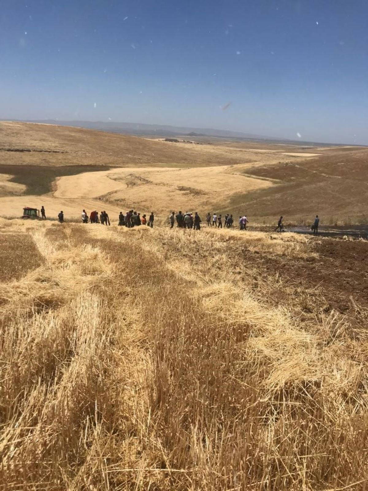 Çiftçilerin yoğun çabası sonucu yangın kontrol altına alıp söndürülürken, 100 dönüm buğday ve arpa küle döndü.