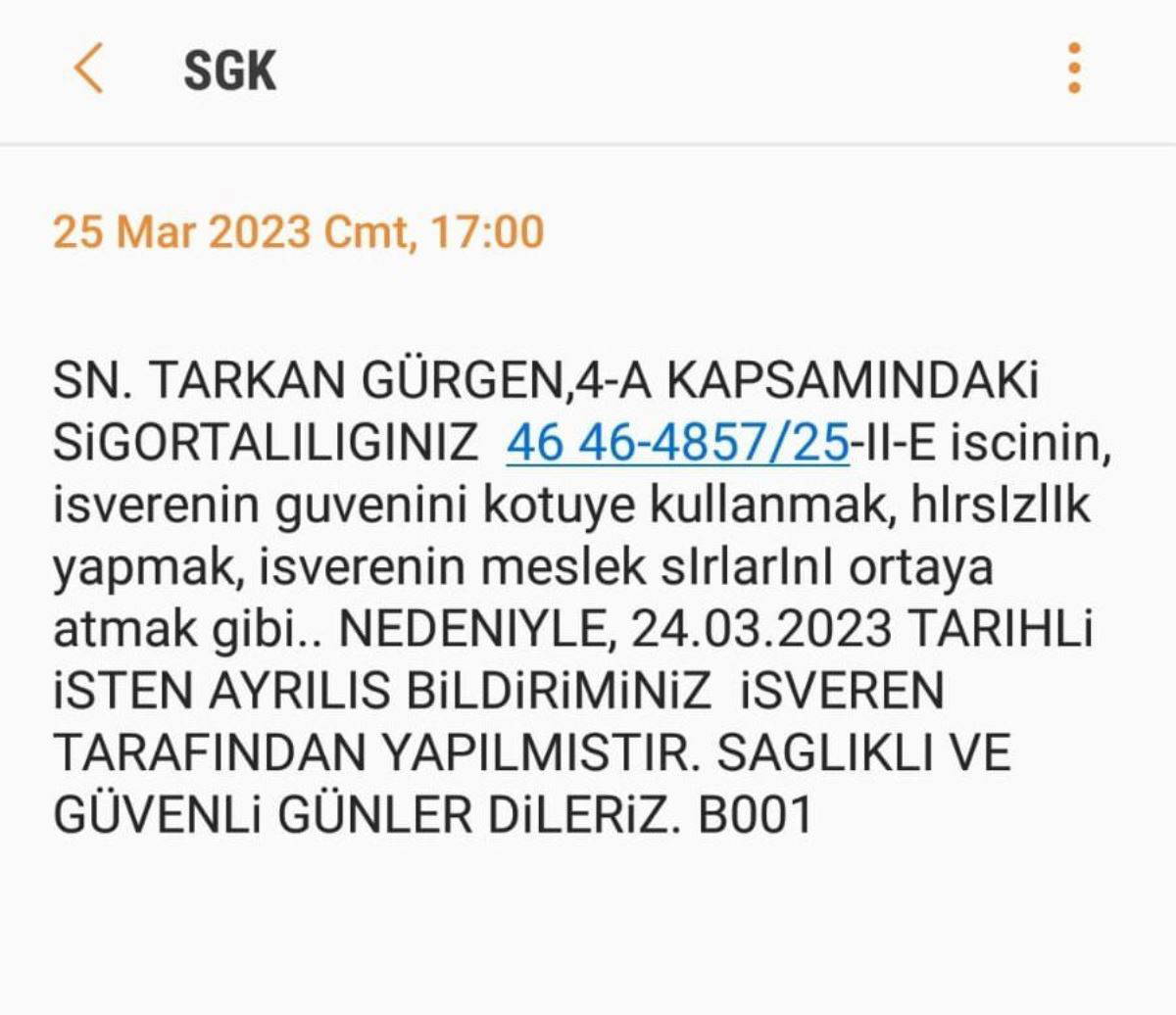 İşçiler, "Kod 46" sebebiyle işten çıkarılmalarına itiraz ettiklerinde işverenden “Biz kod 46 ile çıkarmayacaktık bunu sigorta yapmış” şeklinde yanıt aldıklarını belirtti. Konuya ilişkin soru yönelttiğimiz A.B., bu iddia karşısında da yanıt vermedi.