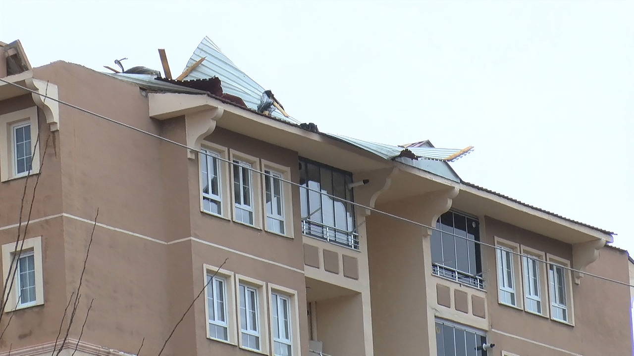 Öğle saatlerinden itibaren etkisini arttıran rüzgar nedeniyle Saray, İnönü ve Yenişehir mahallelerinde ve Genç ilçesinde toplam 6 binanın çatısı uçtu.