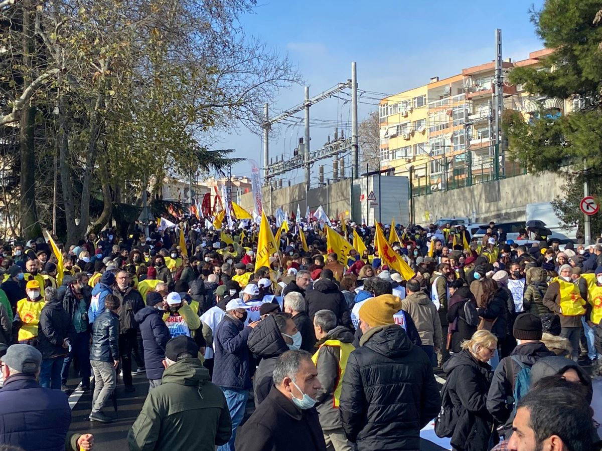 Metrelerce uzunluktaki kortejde “İnsanca yaşam, emekten ve halktan yana bütçe için omuz omuza”, “Geçinemiyoruz”, “Torpile ve kayırmacılığa hayır! Mülakat değil, liyakat için!”, “Krize, işsizliğe, erkek şiddetine karşı isyandayız” pankartları açıldı ve “Gün gelecek devran dönecek, AKP halka hesap verecek”, “Birleşe, birleşe kazanacağız”, “Zam, zulüm, işkence işte AKP”, “Sefalete teslim olmayacağız”, “Hükümet istifa”, “Saraya değil, emekçiye bütçe”, “Kurtuluş yok tek başına, ya hep beraber ya hiçbirimiz” sloganları atıldı.