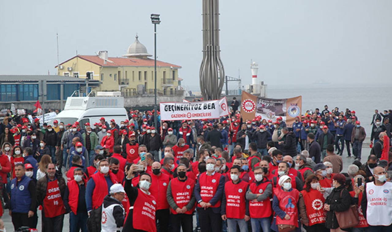 Devrimci İşçi Sendikaları Konfederasyonu (DİSK)'in Ege Bölge Temsilciliği, İzmir Cumhuriyet Meydanı'nda "Geçinemiyoruz" konulu bir basın açıklaması gerçekleştirdi. Meydana farklı noktalardan yürüyerek gelen binlerce işçi "Hükümet istifa", "Hırsızlara değil, halka bütçe", "İnsanca bir yaşam istiyoruz", "Saray'ın kölesi olmayacağız" sloganları atarak hükümetin ekonomi politikalarına tepkilerini gösterdi.